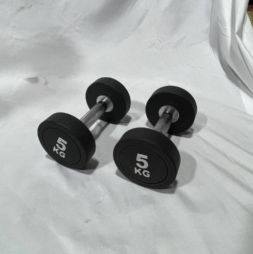 力搏森哑铃5kg一对圆头TPU纯钢哑铃健身房商用举重男士健身